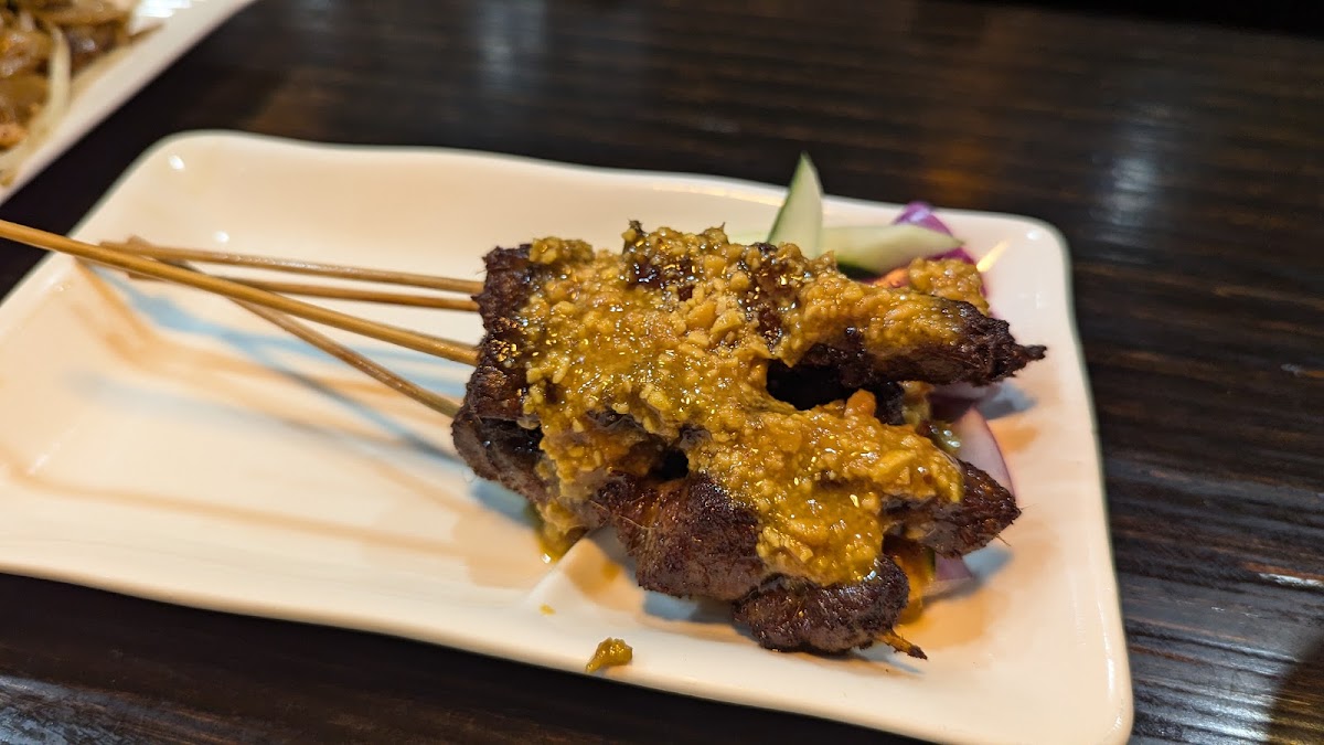West New Malaysia delivered a deeply satisfying dining experience with each dish highlighting the layered influences that define Malaysian cuisine, shaped by Malay, Chinese, and Indian cultures over centuries of trade and migration. My boyfriend and I truly loved the experience, and every course reflected both technical skill and cultural understanding. We began with Roti Canai, a staple with origins tied to South Indian flatbreads introduced to Malaysia through Indian Muslim communities. The roti was expertly prepared, flaky and layered with a light crisp on the outside and soft, elastic texture within. It was served with a curry sauce rich in aromatics such as turmeric, cumin, coriander, curry leaves, and onion. The sauce had depth without heaviness, allowing the spices to bloom while remaining balanced and approachable. Alongside it, the beef satay showcased another iconic Malaysian dish, traditionally grilled over charcoal after being marinated in spices such as lemongrass, garlic, turmeric, and sugar. The beef was tender with a subtle smokiness, and the peanut sauce was smooth and well emulsified, made with ground peanuts, coconut milk, palm sugar, and chili. Fresh cucumber and onion added a clean, cooling contrast that rounded out the dish. As a small note, the satay was served with the peanut sauce already on top serving the sauce on the side would help minimize cross contamination and make the dish more accommodating for guests with peanut allergies, while also allowing diners to control the amount of sauce to their preference. For my main, I ordered the Penang Asam Laksa, a dish that reflects the bold identity of Penang’s street food culture. Unlike coconut based laksa, Asam Laksa is defined by its sour and savory profile. The broth was built on a fish base traditionally made with mackerel, combined with tamarind for acidity, chili for heat, lemongrass for fragrance, and fermented shrimp paste for depth. Thick rice noodles formed the foundation, while toppings of shredded fish, cucumber, onion, fresh herbs, and pineapple added texture and brightness. The interplay of sour, spicy, savory, and lightly sweet flavors was vibrant and complex, staying true to the dish’s origins and intent. My boyfriend chose the seafood pan fried crispy noodles, a dish influenced by Chinese Malaysian cooking techniques. The noodles were pan fried until golden and crisp, then topped with a savory seafood gravy made from stock, soy sauce, garlic, and vegetables. The dish featured a generous mix of squid, shrimp, fish cakes, bok choy, and egg, each element cooked properly and contributing its own texture and flavor. As the sauce soaked into the noodles, the texture shifted from crisp to tender, creating a layered eating experience. The seafood remained the focal point, enhanced rather than masked by the sauce, which was rich yet restrained. My boyfriend ordered a Malaysian iced coffee, traditionally brewed strong and sweetened with condensed milk, a reflection of colonial era coffee culture adapted to local tastes. For dessert, I chose the red bean ice, a shaved ice dessert commonly found across Southeast Asia. It was served with tender red beans and topped with coconut milk and gula Melaka, a deeply aromatic palm sugar with caramel notes. Although cendol was unavailable that day, the combination of coconut milk and gula Melaka still delivered the dessert’s signature balance of richness and sweetness, making it a refreshing and satisfying way to end the meal. West New Malaysia offers a well executed representation of Malaysian cuisine. The food is balanced, confident, and deeply satisfying, making it a place that leaves you wanting to return not for novelty, but for authenticity and consistency done with care.